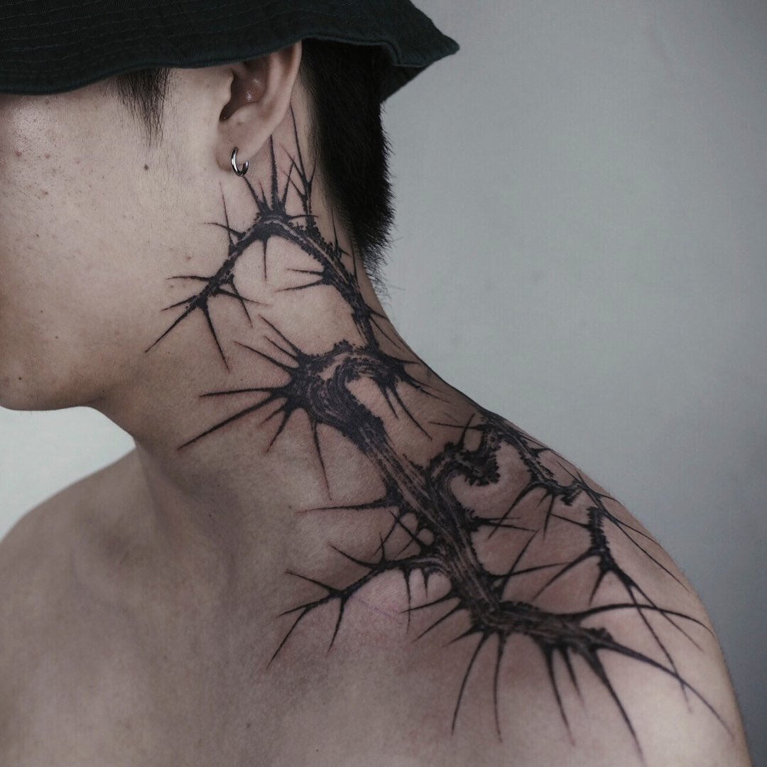 Woo Wonjae_ Tatoo Black ink tattoos, Thorn tattoo, Neck tattoo